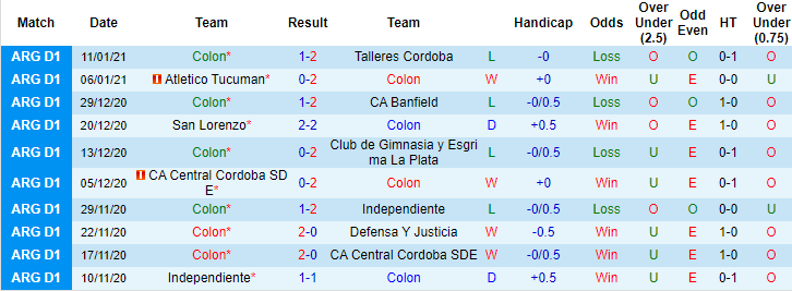 + Thống kê 10 trận gần nhất của Colon Santa Fe