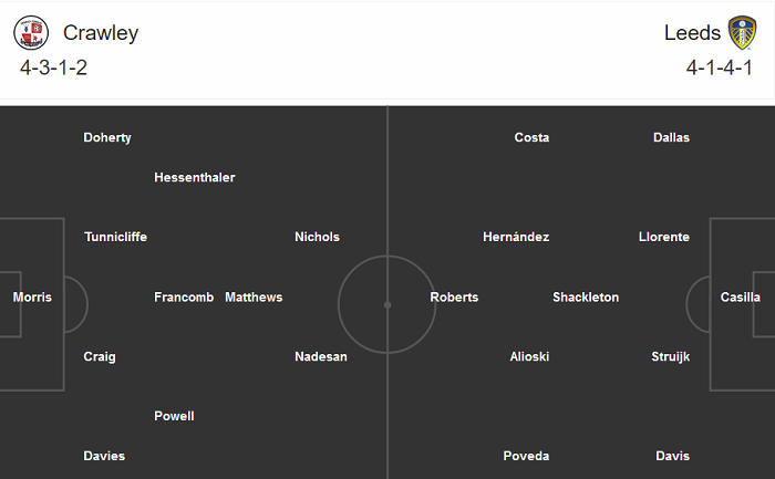 Những trận đấu của Leeds thường xuất hiện nhiều bàn thắng. 4/5 màn so tài gần nhất của họ chứng kiến không dưới 3 pha lập công. Kịch bản tương tự hứa hẹn tái diễn khi Leeds so tài cùng Crawley Town vào Chủ nhật (10/1).