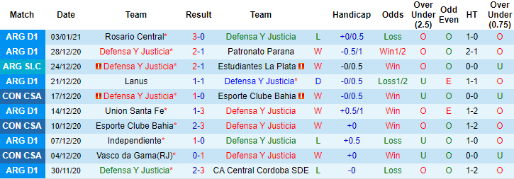 + Thống kê 10 trận gần nhất của Defensa y Justicia