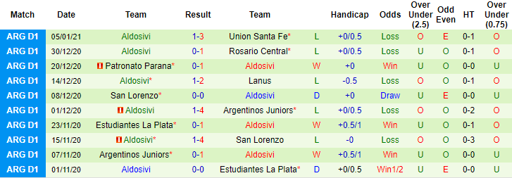 + Thống kê 10 trận gần nhất của Aldosivi