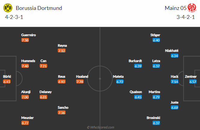 Đội hình dự kiến Dortmund vs Mainz