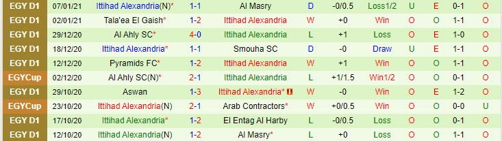 + Thống kê 10 trận gần nhất của Ittihad Alexandria