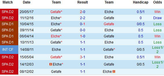 + Lịch sử đối đầu Elche vs Getafe