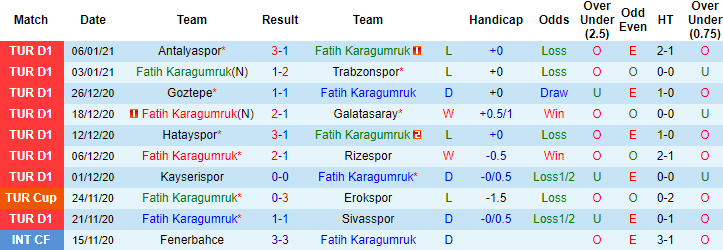 Fatih Karagumruk là tân binh mới thăng hạng tại giải VĐQG Thổ Nhĩ Kỳ mùa này. Tuy nhiên với lối chơi biết mình, biết người, Fatih Karagumruk sớm cho thấy họ không phải đối thủ dễ bị bắt nạt. Sau 16 trận họ đã giành được 21 điểm, xếp thứ 9 trên bảng xếp hạng. 5 trận đã đấu trên sân nhà mùa này, Fatih Karagumruk bất bại với 3 chiến thắng và 1 trận hòa.
