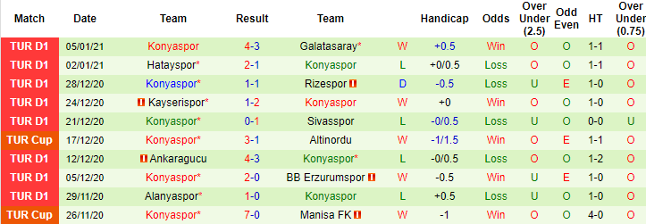 + Thống kê 10 trận gần nhất của Konyaspor