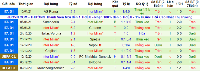4/5 trận vừa qua của Inter Milan chứng kiến 3 bàn thắng. 2/4 màn so tài gần đây của Fiorentina cũng có tổng số pha lập công tương tự. Kịch bản tổng số bàn thắng là 3 này hứa hẹn tái diễn vào thứ Tư (13/1).