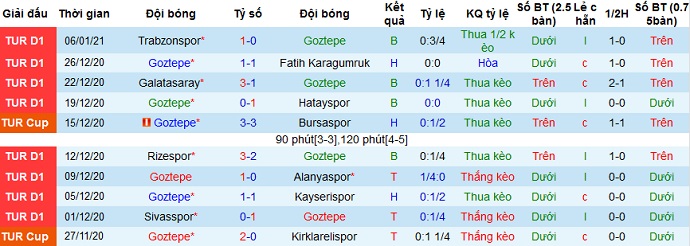 + Thống kê 10 trận gần nhất của Göztepe