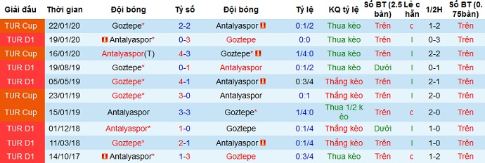 + Lịch sử đối đầu Göztepe vs Antalyaspor