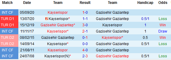 + Lịch sử đối đầu Gazisehir Gaziantep vs Kayserispor