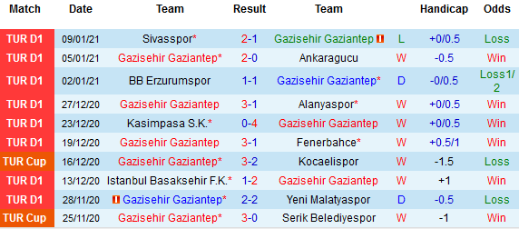 + Thống kê 10 trận gần nhất của Gazisehir Gaziantep