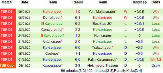 + Thống kê 10 trận gần nhất của Kayserispor