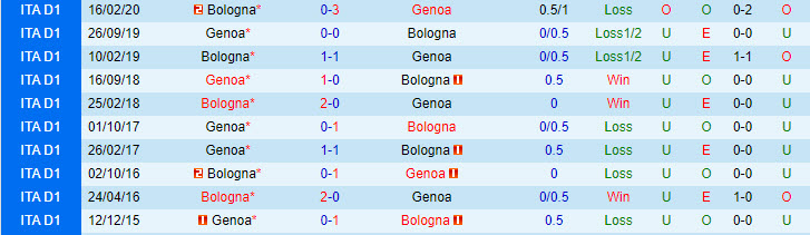 Phong độ và thống kê đối đầu Genoa - Bologna gần đây:
