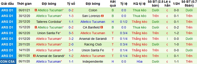+ Thống kê 10 trận gần nhất của Tucumán