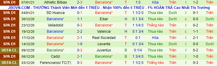 + Thống kê 10 trận gần nhất của Barcelona