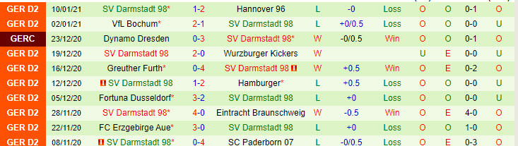 + Thống kê 10 trận gần nhất của Darmstadt