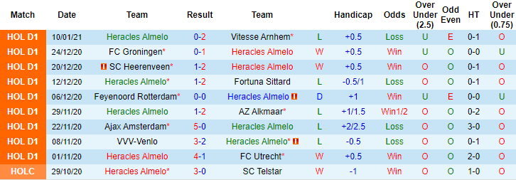 + Thống kê 10 trận gần nhất của Heracles Almelo