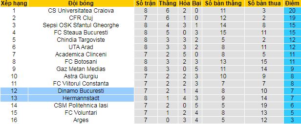 Về phía đội khách, Dinamo Bucuresti cũng chỉ hơn Hermannstadt 1 điểm. Dù vậy, phong độ của đội bóng này trong thời gian gần đây đang có những chuyển biến tích cực. Theo đó, 7 trận gần nhất trên mọi đấu trường họ bất bại tới 6 lần.