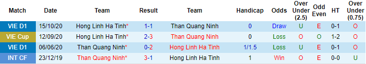 Hồng Lĩnh Hà Tĩnh không thắng 3 trên 4 trận đối đầu Than Quảng Ninh trước đây tính trên mọi đấu trường (thua 2, hòa 1). Hai lần tiếp đón Than Quảng Ninh trên sân nhà, Hồng Lĩnh Hà Tĩnh thua 1, hòa 1. Phong độ giai đoạn gần đây của đội bóng núi Hồng là cực kỳ tệ.