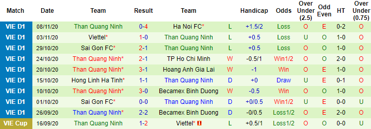 + Thống kê 10 trận gần nhất của Than Quảng Ninh