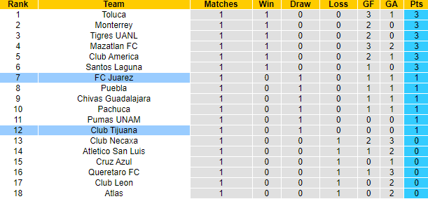 Juarez mới thăng hạng lên giải đấu số 1 Mexico ở mùa giải trước. Lực lượng không được đánh giá cao nhưng với lối chơi hợp lý, Juarez đã và đang cho thấy họ không phải đối thủ dễ bị bắt nạt. 4 trận liên tiếp gần đây Juarez bất bại về mặt tỷ số và toàn thắng theo kèo châu Á. Lần gần nhất tiếp đón Tijuana trên sân nhà, Juarez giành chiến thắng thuyết phục với tỷ số 3-0.