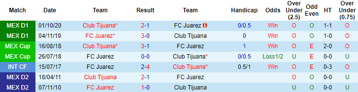 + Lịch sử đối đầu Juarez vs Tijuana
