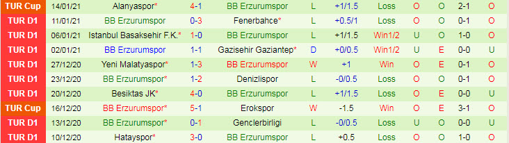 + Thống kê 10 trận gần nhất của Erzurum BB