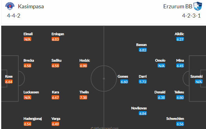Đội hình dự kiến Kasimpasa vs Erzurum BB: