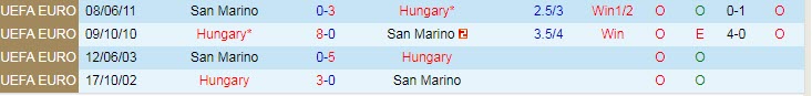 Phong độ và thống kê đối đầu San Marino - Hungary gần đây: