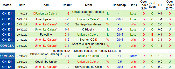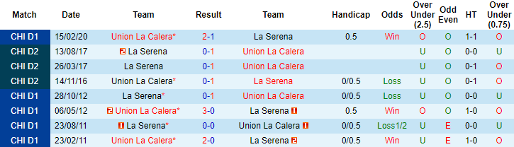 3 trận đối Union La Calera gần đây, La Serena toàn thua, thủng lưới 4 lần và chỉ 1 lần ghi được bàn danh dự. 3 trận vừa qua tại giải VĐQG Chile, La Serena đều chỉ có được kết quả hòa nên về mặt lý thuyết, trận đấu sắp tới họ khó hứa hẹn giành chiến thắng.
