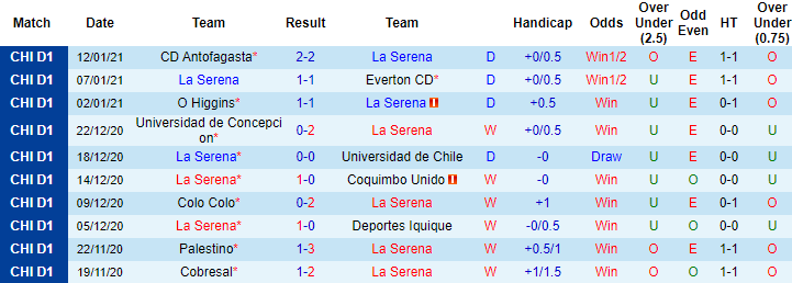 Dẫu vậy, điều đáng lưu ý là 3 trận hòa vừa qua, La Serena đều xếp chiếu dưới. Tính theo kèo châu Á, đội bóng này bất bại 11 trận liên tiếp gần đây với 10 chiến thắng và 1 trận hòa. Trận đấu sắp tới La Serena được xếp chiếu trên, cho thấy niềm tin vào khả năng giành 3 điểm.