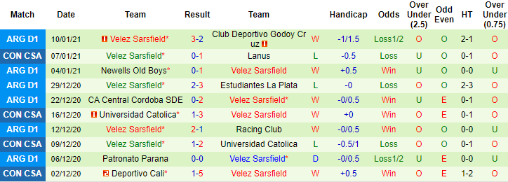 + Thống kê 10 trận gần nhất của Velez Sarsfield