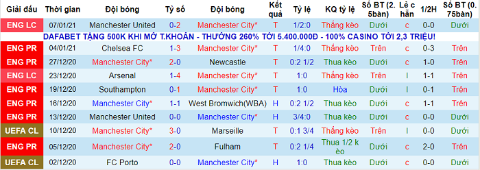 - Thống kê 10 trận gần nhất của Man City