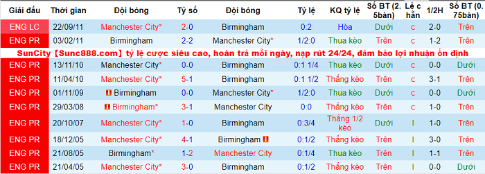 - Thành tích đối đầu gần đây giữa Man City vs Birmingham