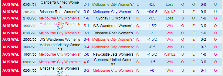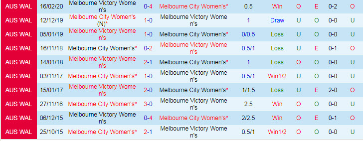 + Lịch sử đối đầu Melbourne City (W) vs Melb. Victory (W)