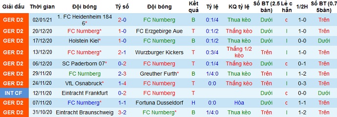+ Thống kê 10 trận gần nhất của Nürnberg