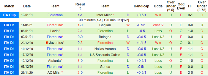- Thống kê 10 trận gần nhất của Fiorentina