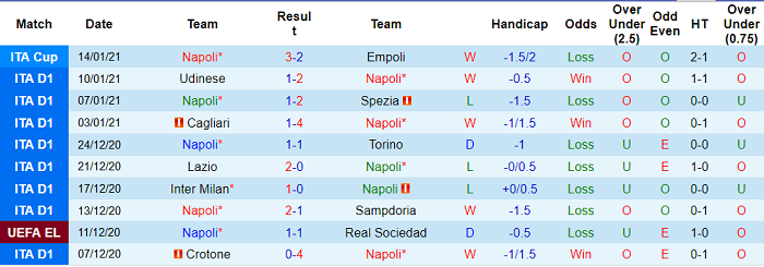 - Thống kê 10 trận gần nhất của Napoli