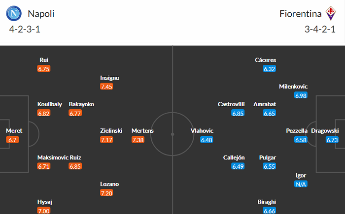 Đội hình dự kiến Napoli vs Fiorentina