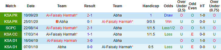 Abha Club được xác định là đối thủ yêu thích của Al Faisaly. Trong vòng 3 trận đối đầu gần đây giữa hai đội, Al Faisaly đạt thành tích toàn thắng. Xa hơn, 6 lần chạm trán Abha Club trước đó tính trên mọi đấu trường, Al Faisaly bất bại với 4 thắng, 2 hòa. Giai đoạn gần đây Abha Club cũng thi đấu với phong độ không tốt.