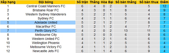 + Lịch sử đối đầu Adelaide United vs Perth Glory