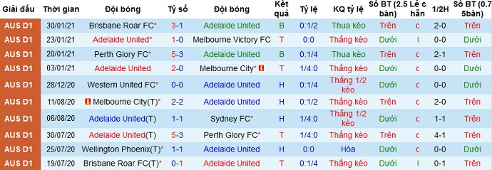 + Thống kê 10 trận gần nhất của Adelaide United