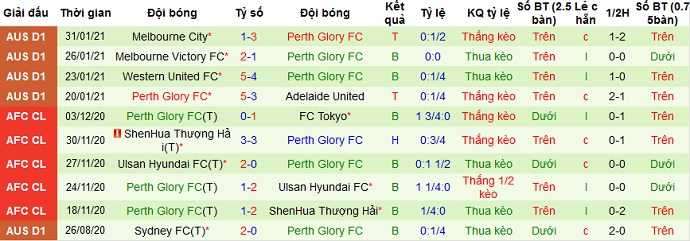+ Thống kê 10 trận gần nhất của Perth Glory