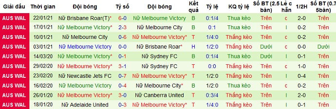 + Thống kê 10 trận gần nhất của Melbourne Victory (W)