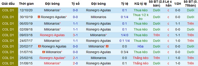 + Lịch sử đối đầu Águilas vs Millonarios