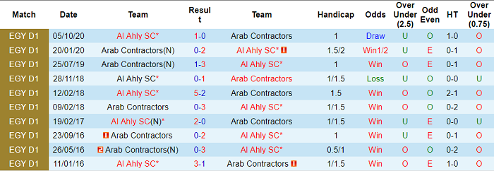 Ahly Cairo không phải nhận bàn thua trong 18/20 trận gần nhất thuộc khuôn khổ giải VĐQG Ai Cập. Họ bất bại 26 trận sân nhà vừa qua ở và thắng tới 9/10 lần chạm trán gần nhất với Arab Contractors.