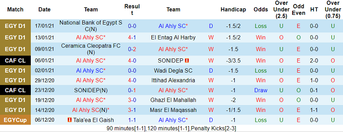 - Thống kê 10 trận gần nhất của Ahly Cairo