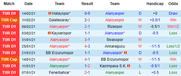 + Thống kê 10 trận gần nhất của Alanyaspor
