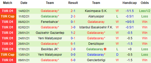 + Thống kê 10 trận gần nhất của Galatasaray