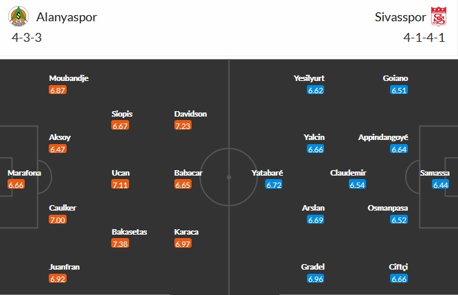 Đội hình dự kiến Alanyaspor vs Sivasspor