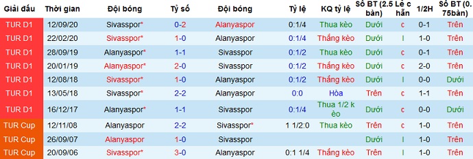 + Lịch sử đối đầu Alanyaspor vs Sivasspor